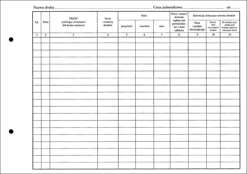 - Każde wydanie druków powinno być ewidencjonowane, wraz z datą, numerem druku i osobą odbierającą dokument.